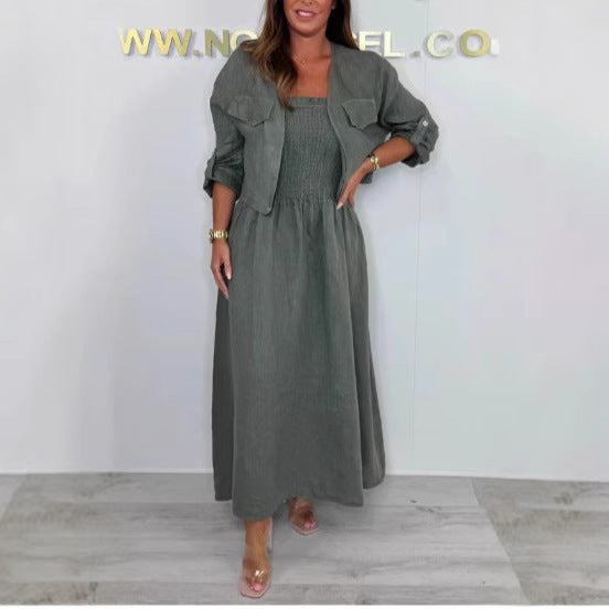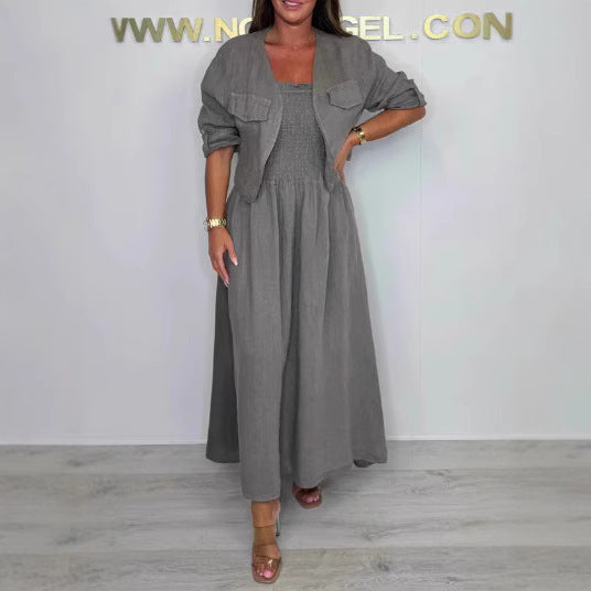 Women's Short Cardigan Suspender Skirt 2-piece Set