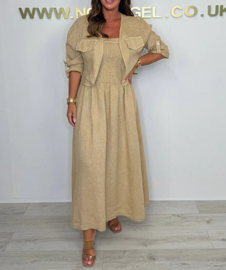 Elevate your summer style with this chic two-piece set designed for comfort and elegance. Perfectly transitions from casual outings to relaxed gatherings, making it your go-to summer wardrobe staple.